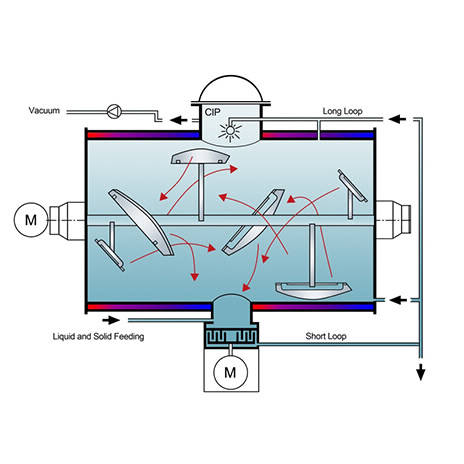 Lödige mengembangkan konsep yang terdiri dari mixer horisontal termasuk homogenizer bergelang dan secara optimal menggabungkan prinsip-prinsip yang terbukti praktik. Konsep ini berdasarkan analisis sistematis dari semua parameter proses dan desain spesifik setiap komponen dapat digunakan untuk hampir semua aplikasi yang mungkin memenuhi persyaratan pelanggan.