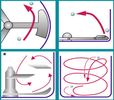 Dalam granulator pencampuran masing-masing komponen resep dihomogenkan oleh impeller pencampur vertikal dan perajang yang digerakkan secara terpisah. Binding agent kemudian ditambahkan untuk granulasi basah dalam mesin yang sama.