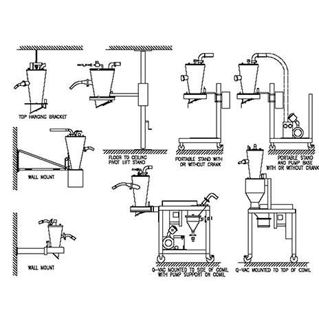 Vacuum conveyor memungkinkan pengangkutan serbuk maupun granul yang bebas debu dan pengangkutan tablet secara lembut. Ini sering digunakan untuk mentransfer material melalui Conical Milling atau Sifter menggunakan adaptor khusus pada input dan output.
